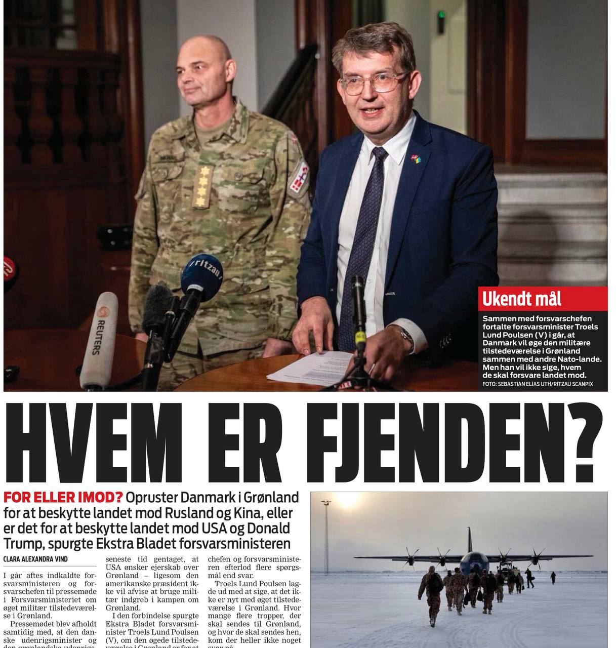 Газета Ekstra Bladet додумалась задать прямой вопрос министру обороны Дании: «Мы защищаем Гренландию от России и Китая или от США?»