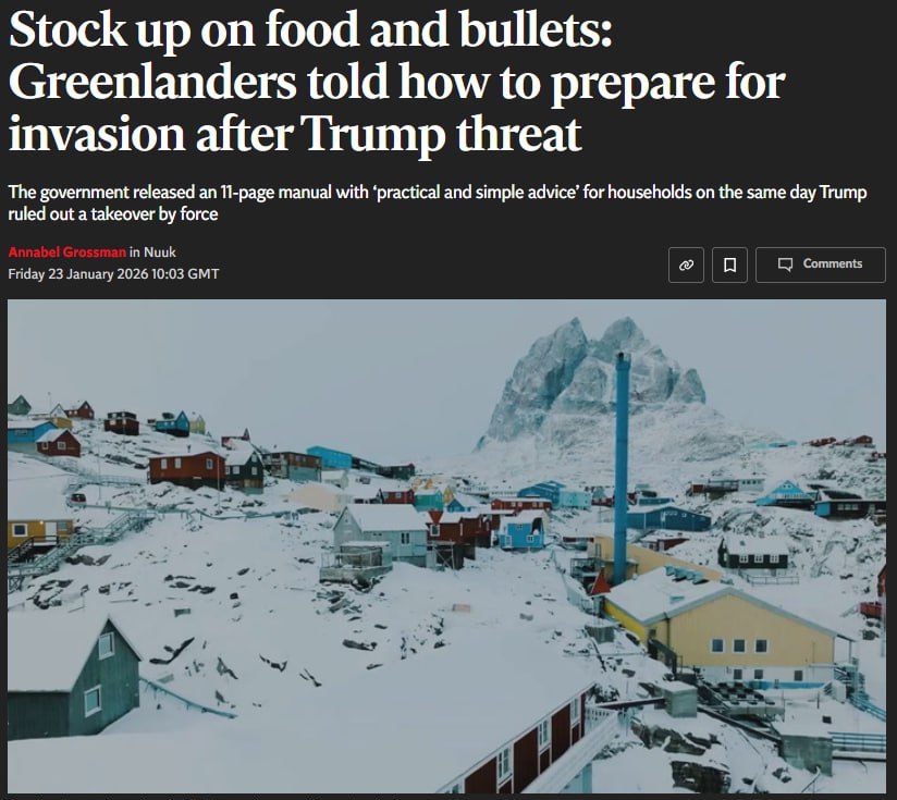 Как пишет The Independent, многие гренландцы испытывают неуверенность в своем будущем после заявлений Трампа о намерении «приобрести» остров. «Они спят, не снимая ботинок», — говорит председатель национальной организации гренландцев в Дании, комментируя настроения соотечественников. «Они должны найти свое оружие, свои винтовки. Они должны быть готовы позаботиться о себе в течение пяти дней. Наступила новая эра, и мы должны быть к ней готовыми», — добавила она.