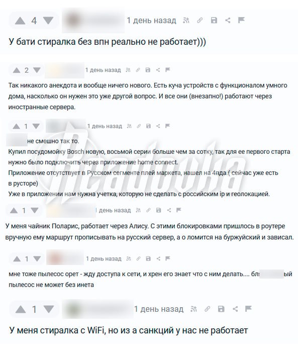 Некоторые пользователи пишут жалобы в РКН, но в ведомстве им якобы ответили, что к ограничениям отношения не имеют. Другие шутят, что их старые стиралки об интернете ничего не знают.