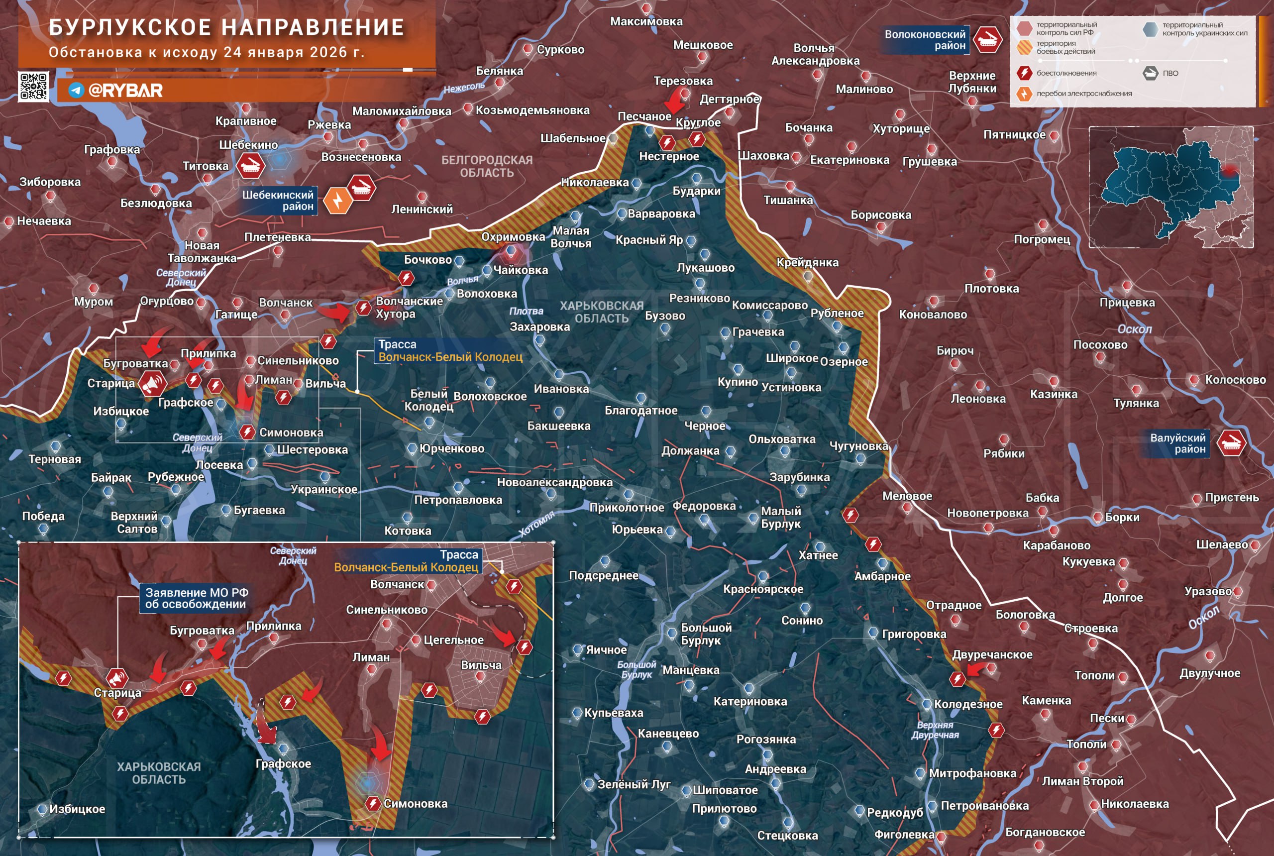 Вместе с тем бойцы зашли на территорию Симоновки. Кадры с мест подтверждают контроль над примерно половиной села, по другим данным оно вовсе полностью освобождено. Обстановка в соседнем Графском пока остается скрытой «туманом войны».
