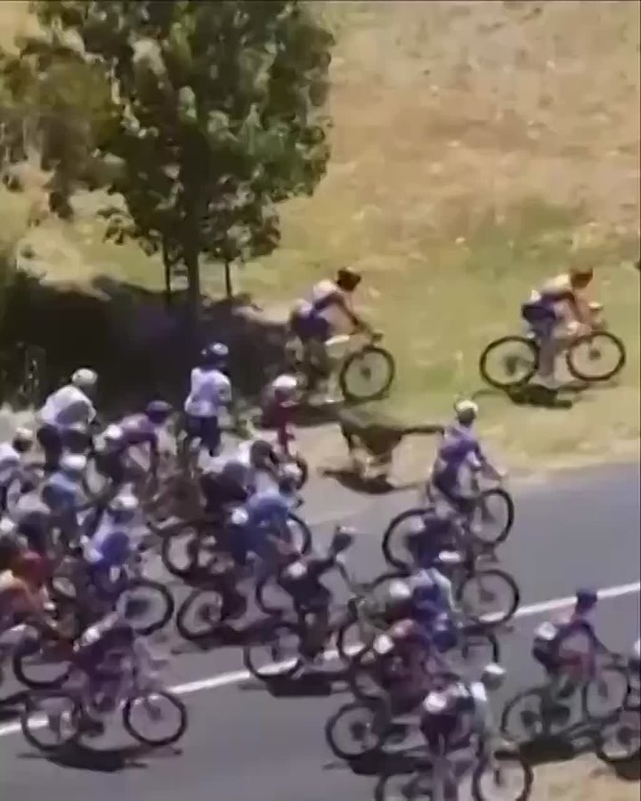 Авария по-австралийски: выбежавший на трассу кенгуру спровоцировал массовый завал на заключительном этапе велогонки Tour Down Under.