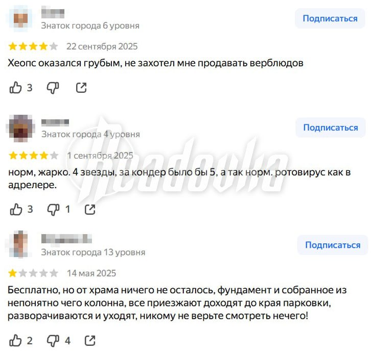 Пирамида Хеопса оставила у некоторых россиян «сложные впечатления», а другие отметили, что родной Кремль куда красивее египетского чуда. Про Колосса Родосского туристы выразились не менее лестно — хорош монумент, «особенно когда знаешь, что его уже нет». Висячие сады Семирамиды расстроили россиян сервисом, а у статуи Зевса, судя по отзывам, плохо кормят. Что еще думают наши туристы о чудесах света — смотрите в подборке.