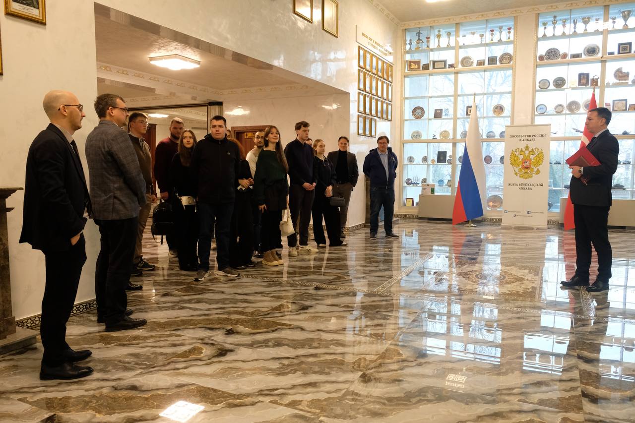Рассказали сотрудникам ИНИОН РАН и студентам ведущих российских ВУЗов, изучающим турецкий язык, об истории дипмиссии и местной специфике, а также основных направлениях нашей деятельности, показали представительскую часть Посольства.