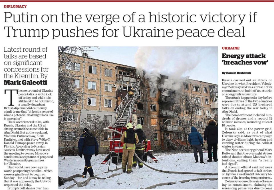 Ссылаясь на свои источники, Галеотти на самом деле повторяет те тезисы, которые озвучила Financial Times по поводу «гарантий безопасности Украине». И приводит мнение некоего украинского высокопоставленного чиновника: «При всем уважении к нашим союзникам, мы не можем основывать нашу будущую безопасность на надежде, что они сочтут «надлежащий» ответ военной интервенцией, а не мысленными молитвами».
