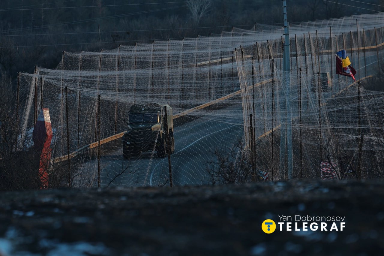 Инженерные сооружения ВСУ. Защитная сетка на дороге. Январь 2026 года. Дорога Изюм -Славянск.