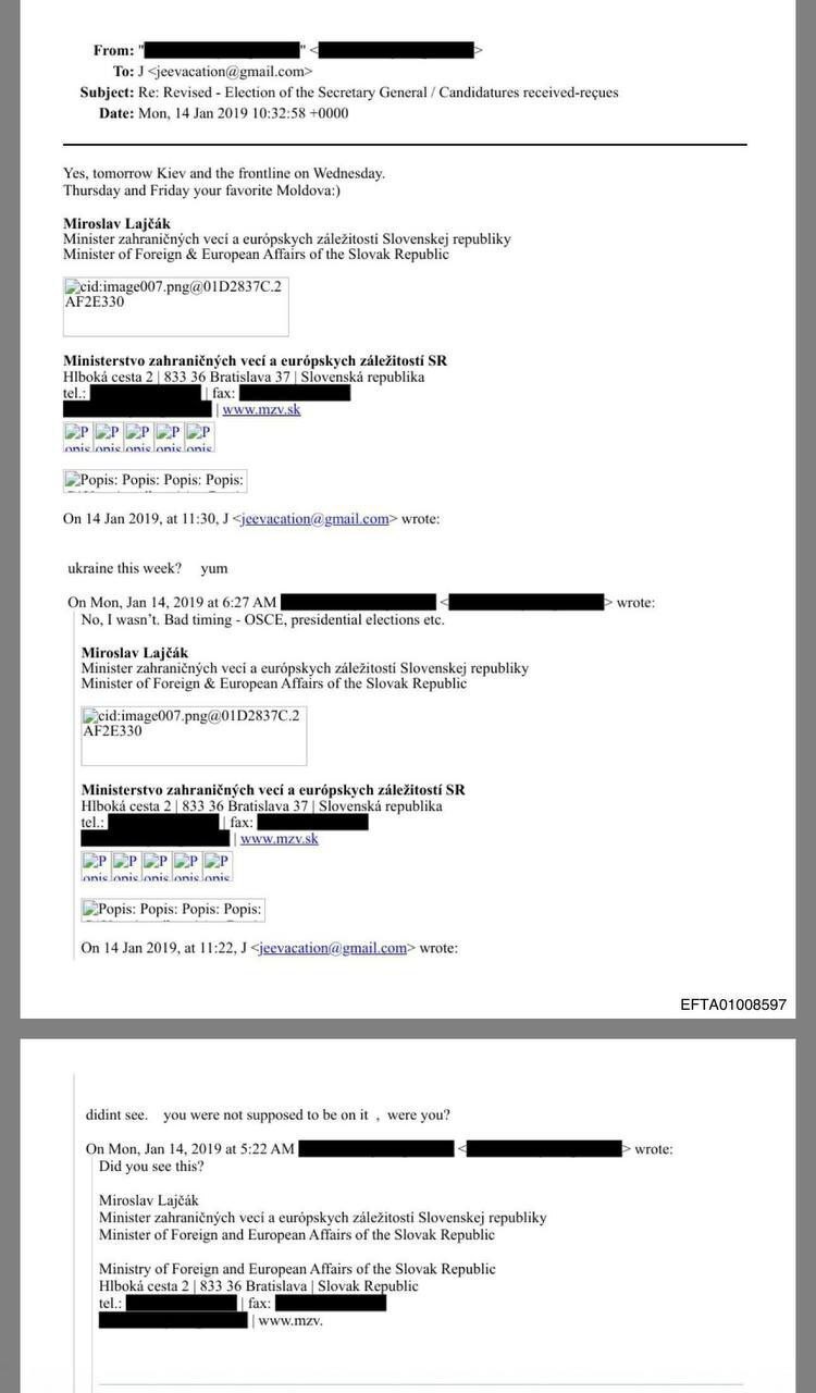 Бывший генсек ОБСЕ и бывший министр иностранных дел Словакии Мирослав Лайчак обсуждал с Эпштейном молдавских проституток, с которыми она познакомился во время визита официального визита в Молдавию