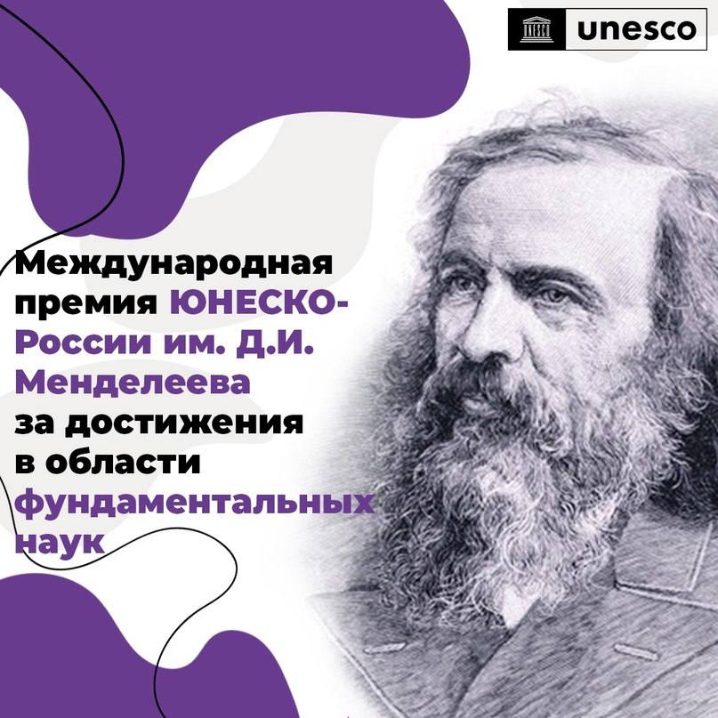 Объявлен четвертый конкурс на соискание Международной премии ЮНЕСКО-России им. Д.И. Менделеева