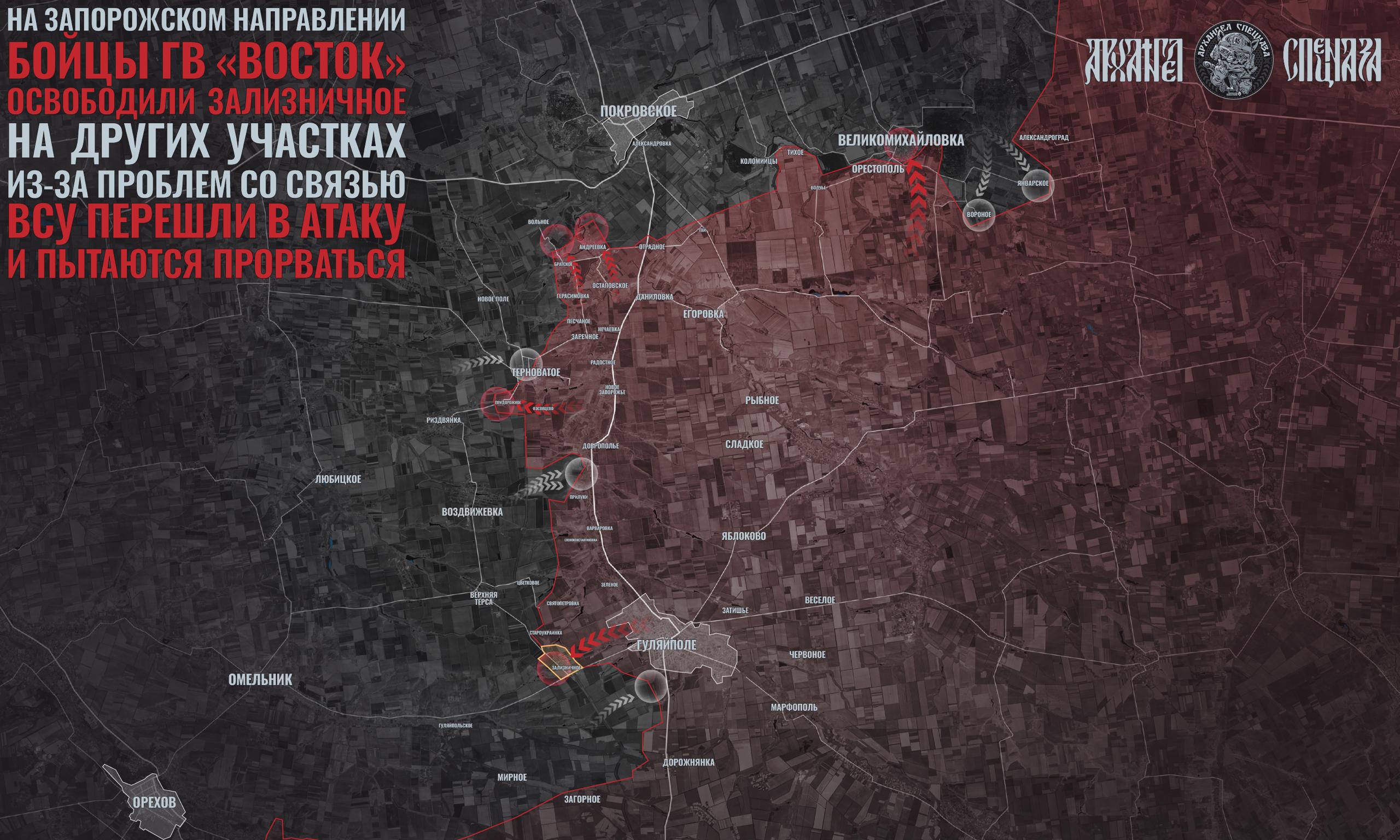 Сегодня из ГВ «Восток» поступили хорошие новости: было освобождено очередное село на направлении Гуляйполя. Теперь занято Зализничное.
