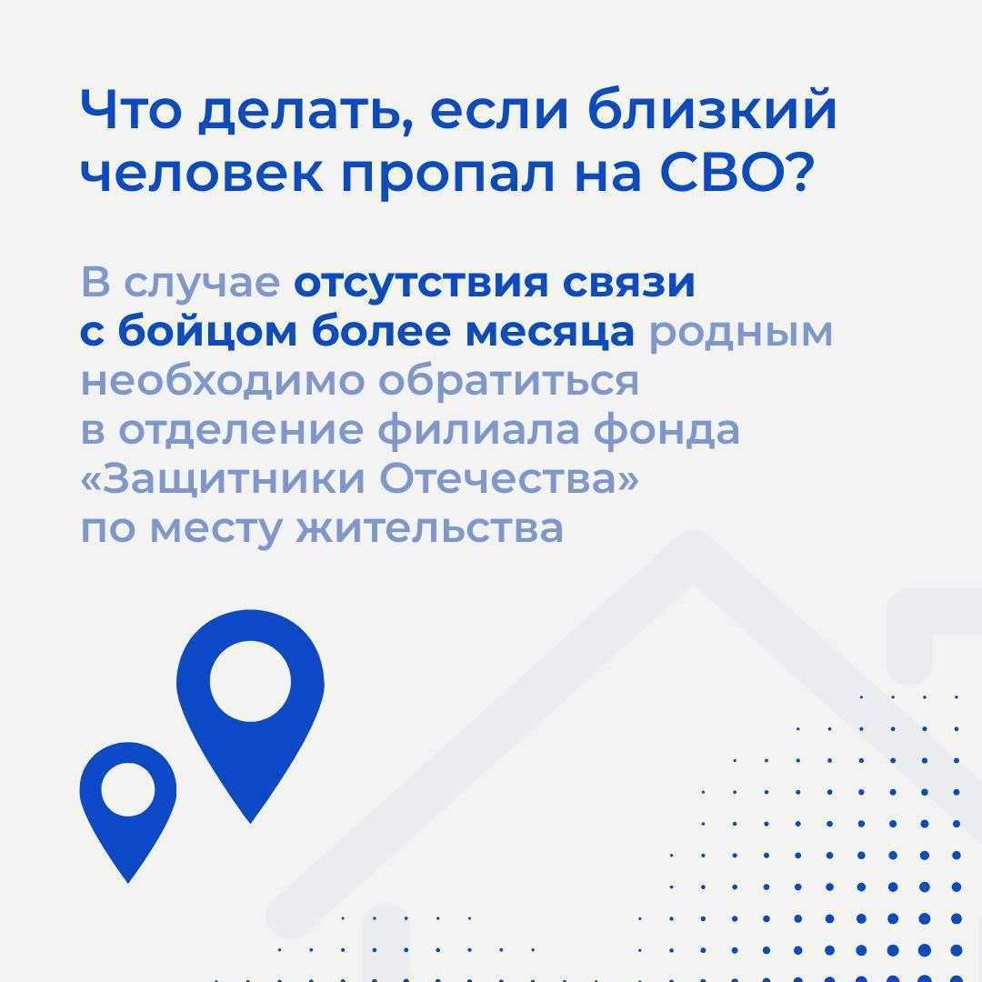 Фонд «Защитники Отечества» совместно со всеми профильными ведомствами оказывает помощь в поиске без вести пропавших участников Спецоперации их близким.
