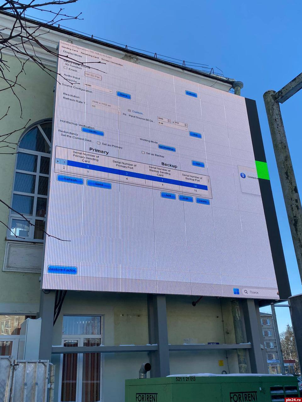 Фотофакт: В Пскове тестируют новый светодиодный экран на здании ГКЦ
