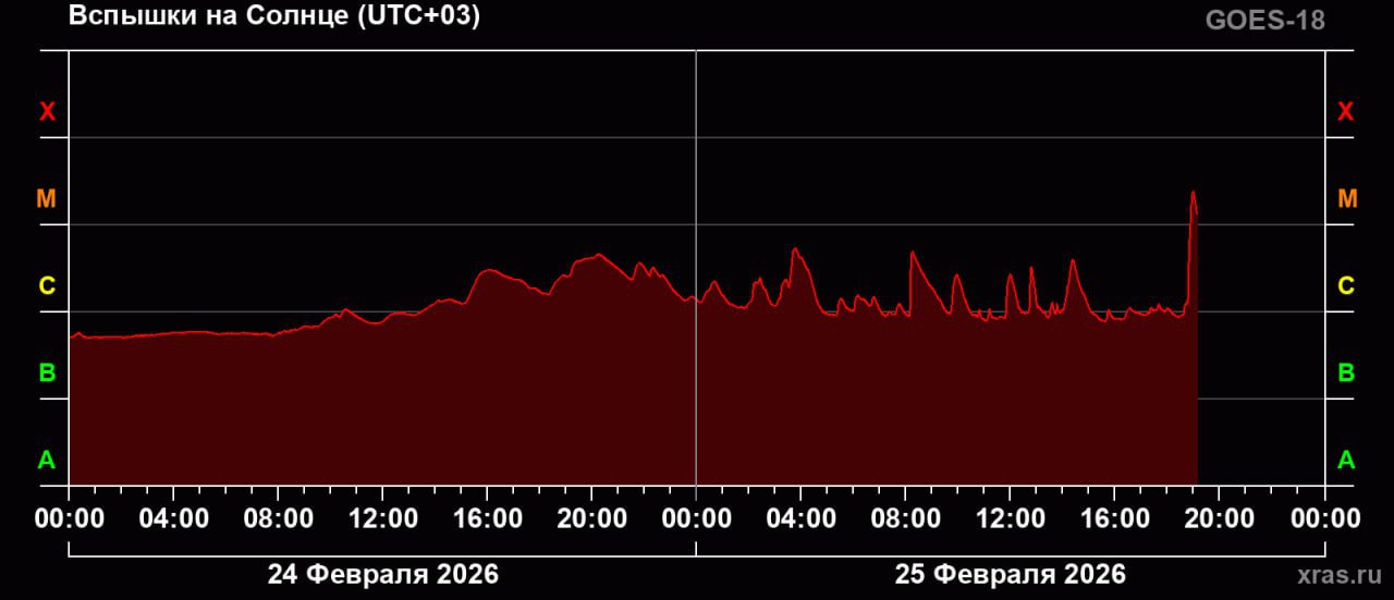 Самая сильная за две недели вспышка класса М произошла на Солнце, сообщает лаборатория солнечной астрономии ИКИ РАН.
