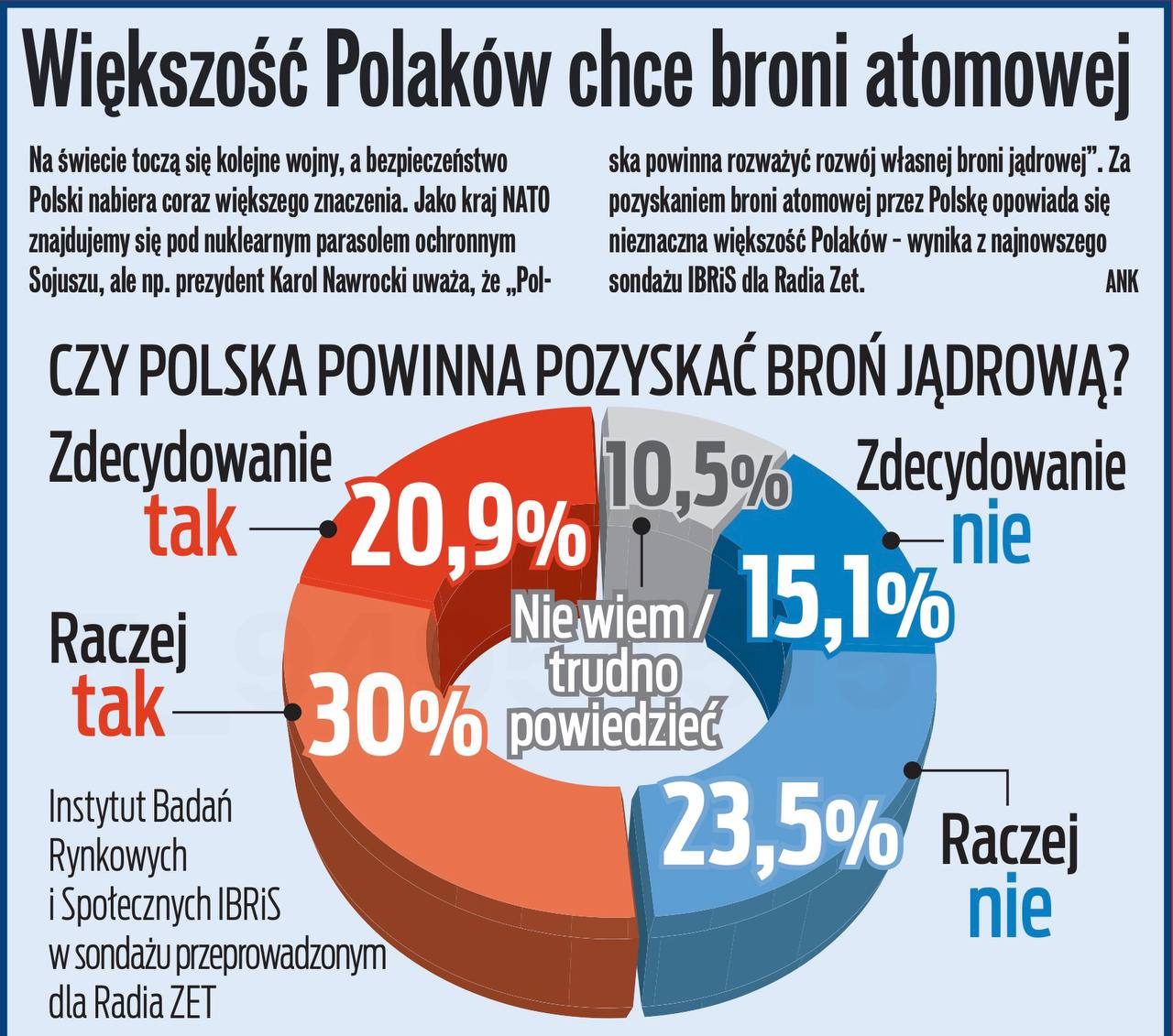 Итак, Дональд Туск тоже заявил, что Польша намерена обзавестись своим ядерным оружием. Согласно свежему опросу IBRiS, 50,9% поляков поддерживают эту идею, 38,6% выступают против.