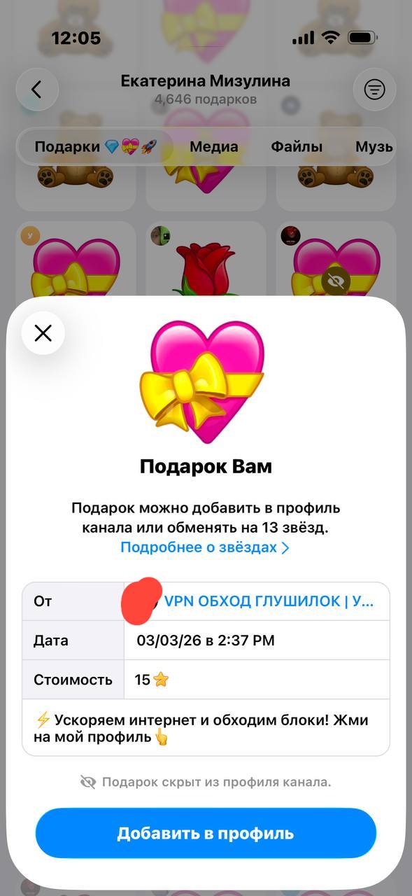 У меня никогда не было рекламы в канале. Но каждый день мне неизвестные лица бесконечно кидают в подарки канала вот такую фигню. Если подарки не скрыть вовремя, это уже нарушение закона о рекламе или еще нет?
