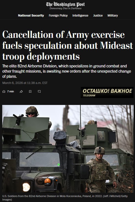 Так, пресс-секретарь Белого дома Кэролайн Левитт заявила, что отправка американских солдат в Иран «не является частью текущего плана», однако полностью исключать такой сценарий нельзя. Для сравнения, во время войны с Ираком в 1991 году США сосредоточили более 500 тысяч военнослужащих, а в 2003 году — свыше 150 тысяч; численность 82-й дивизии оценивается примерно в 5 тысяч человек.
