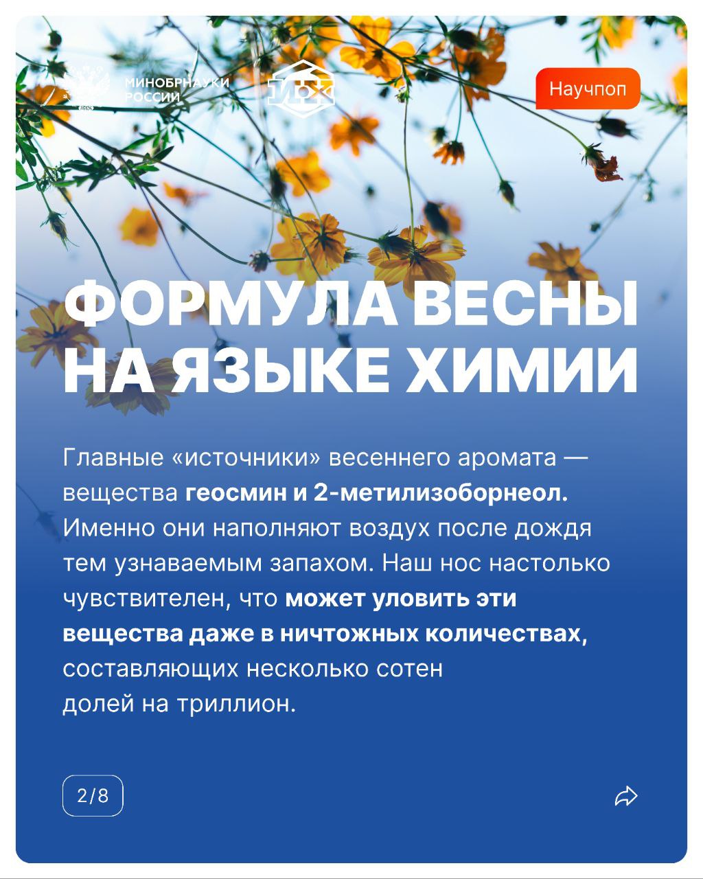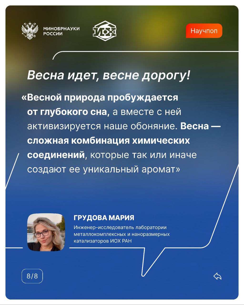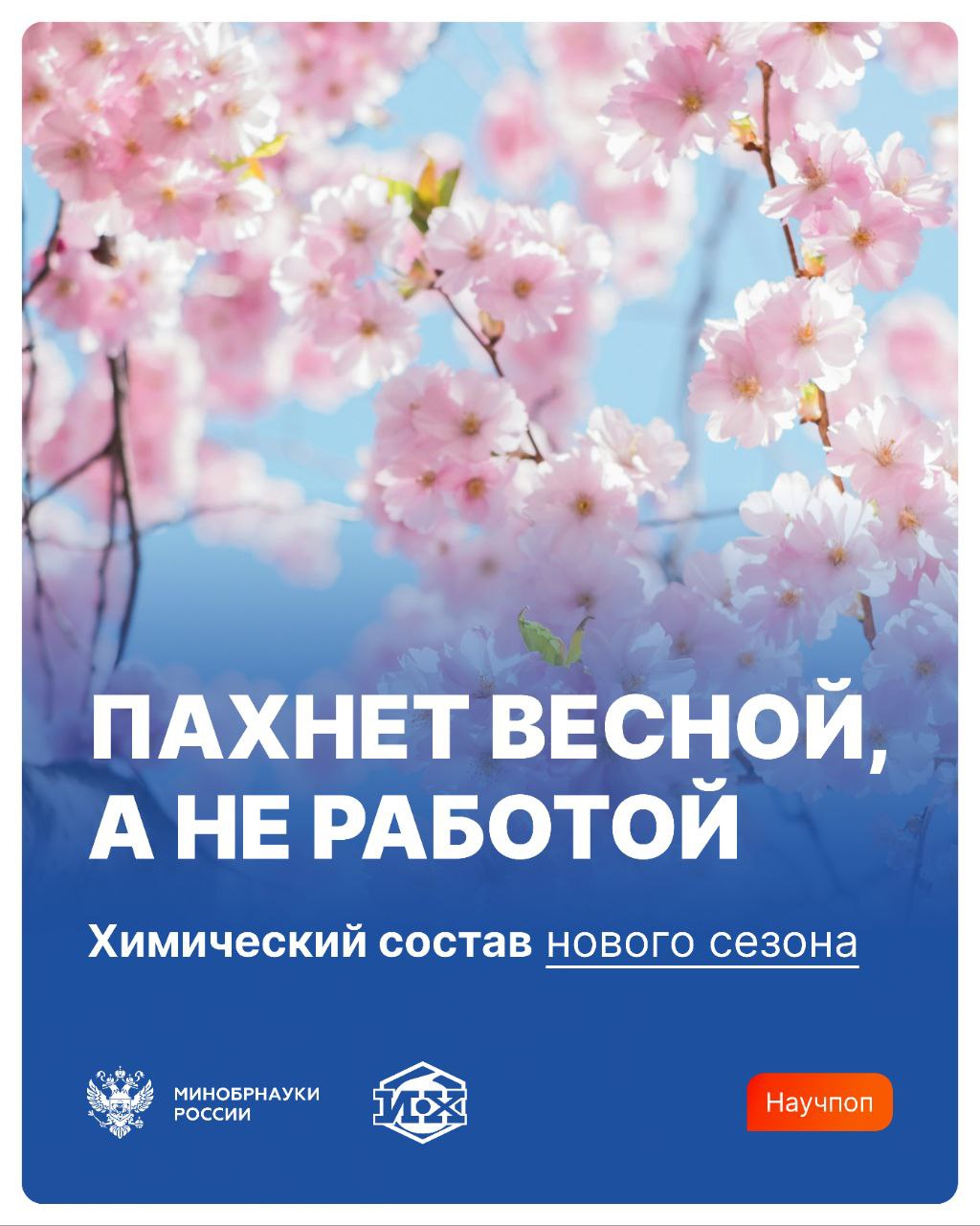 Чем пахнет весна?. Разбираем химический состав нового сезона вместе с Марией Грудовой, инженером-исследователем Лаборатории металлокомплексных и наноразмерных катализаторов ИОХ РАН