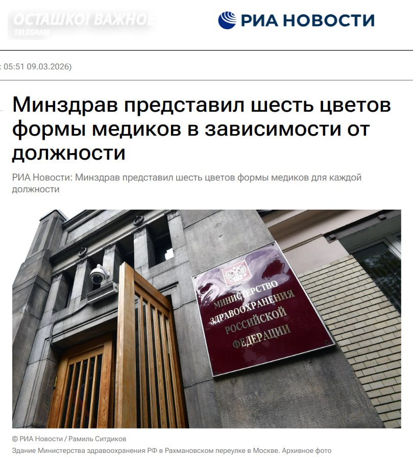 Минздрав раскрасил медиков по должностям: от фиолетового до серого
