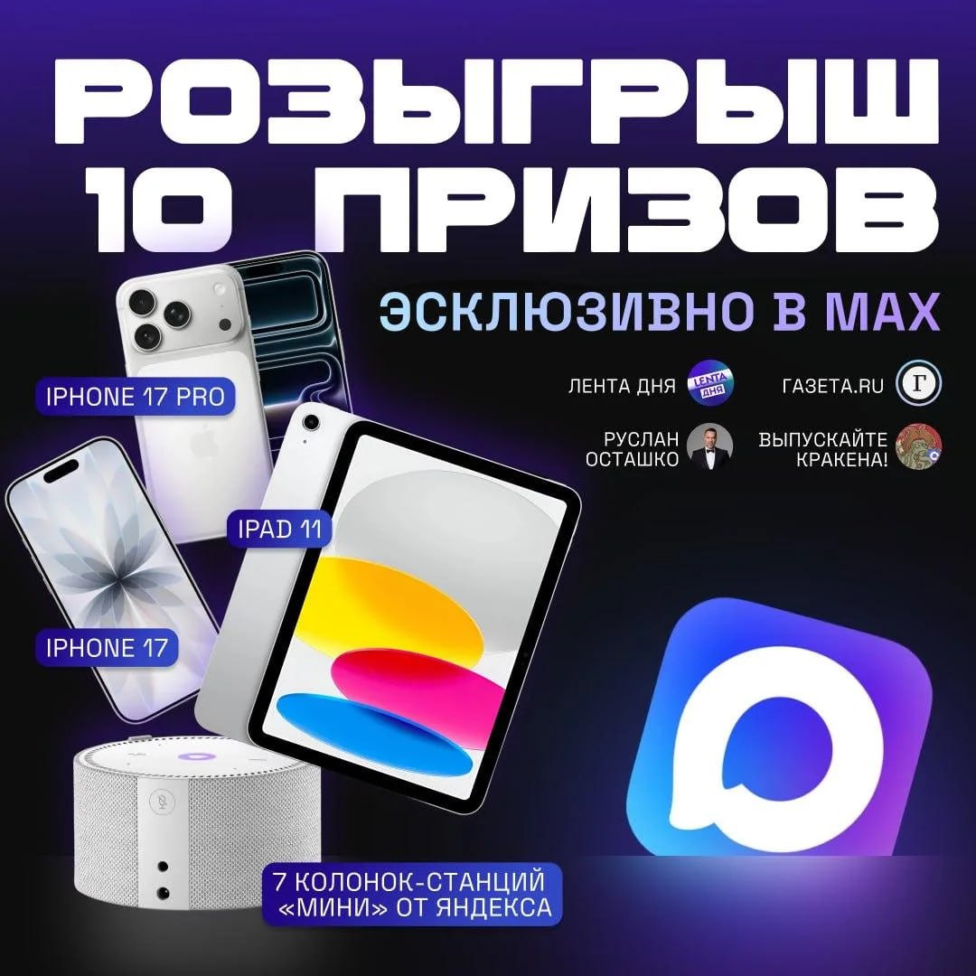 Друзья, запускаем первый большой розыгрыш техники в MAX. Делаем его у Выпускайте Кракена!, Лента.ру и Газета.ру - решили зайти в новую площадку сразу с нормальным масштабом.