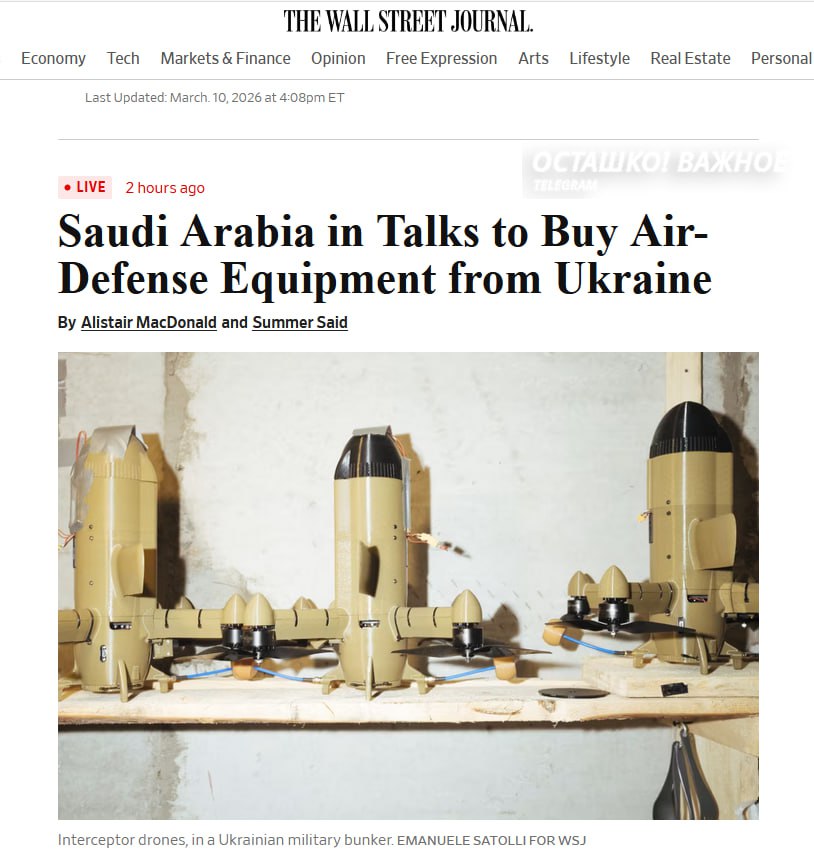 Саудовская Аравия ведёт с режимом Зеленского переговоры о крупной закупке украинских систем ПВО. Речь идёт о дронах-перехватчиках и средствах радиоэлектронной борьбы.