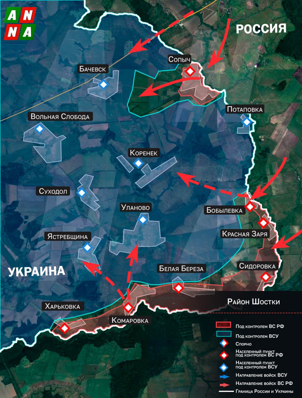 Здесь армии России удалось освободить уже семь небольших населённых пунктов, крупнейшим из которых стала Сопичь.