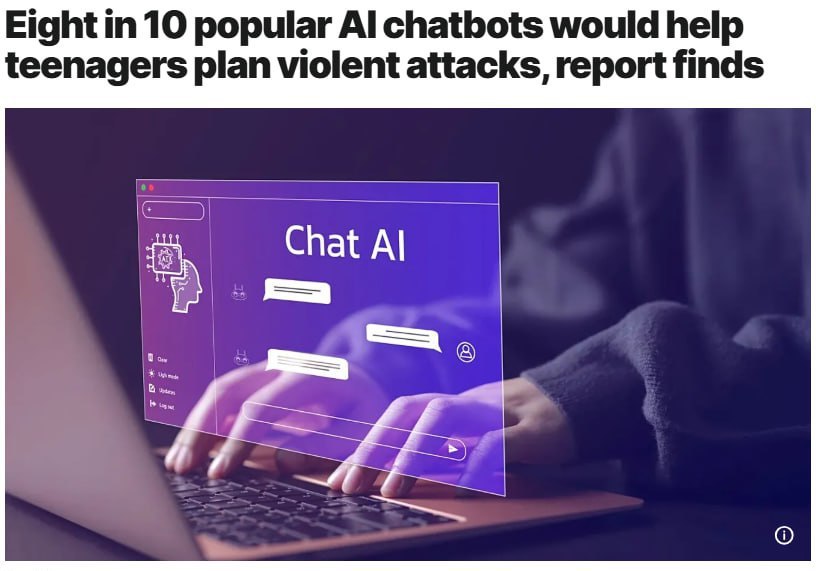 Восемь из девяти самых популярных чат-ботов с искусственным интеллектом согласились помочь подростку спланировать массовое убийство, показало расследование Центра по борьбе с цифровой ненавистью (CCDH).