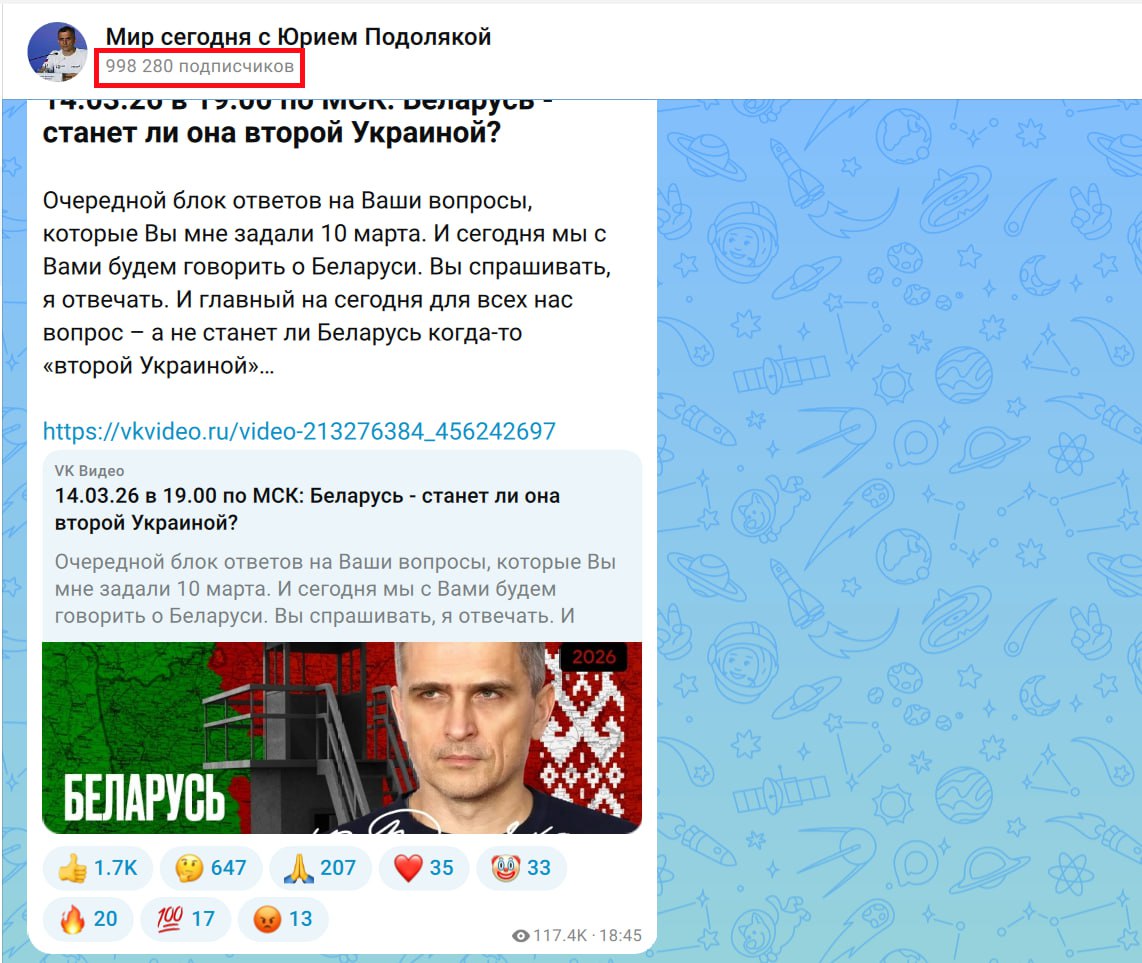 14.03.26 в 19.00 по МСК: Беларусь - станет ли она второй Украиной? Очередной блок ответов на Ваши вопросы, которые Вы мне задали 10 марта. И сегодня мы с Вами будем говорить о Беларуси. Вы спрашивать, я отвечать. И главный на сегодня для...