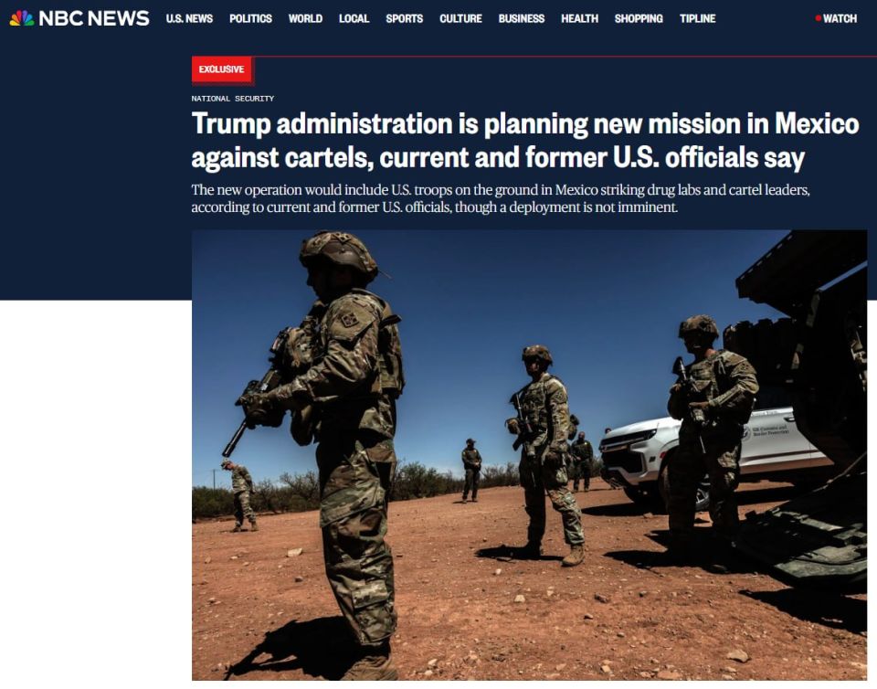 NBC News со ссылкой на действующих и бывших американских чиновников сообщает: администрация Трампа планирует направить войска и сотрудников разведки в Мексику для ударов по нарколабораториям и лидерам картелей. Подготовка к миссии уже началась, но...