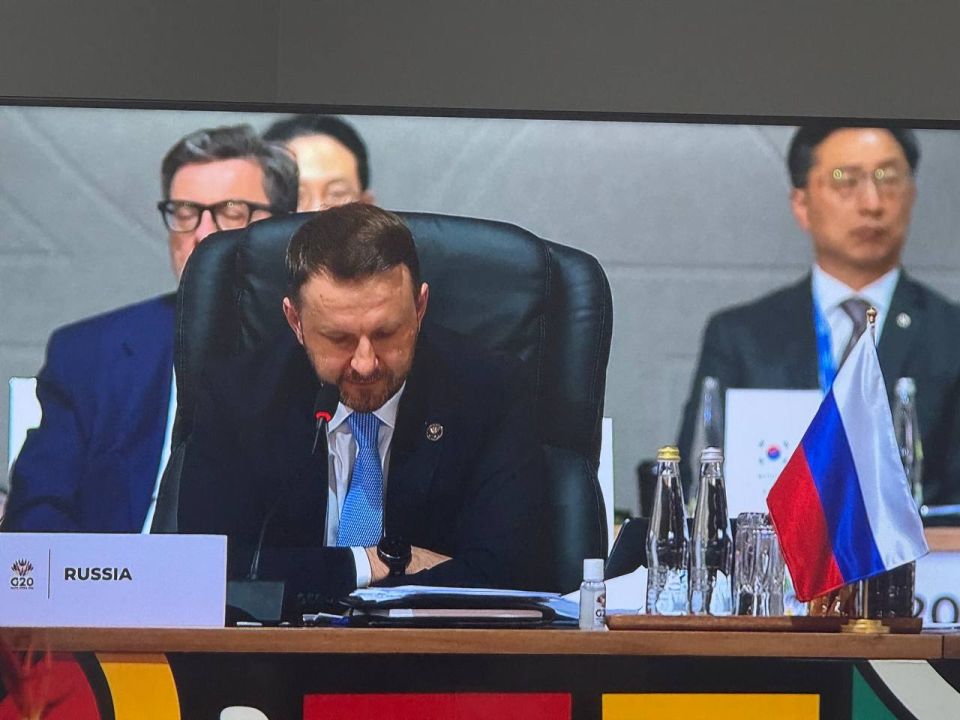Глава российской делегации М.С.Орешкин выступает на первом пленарном заседании по теме экономического роста на саммите лидеров «Группы двадцати»