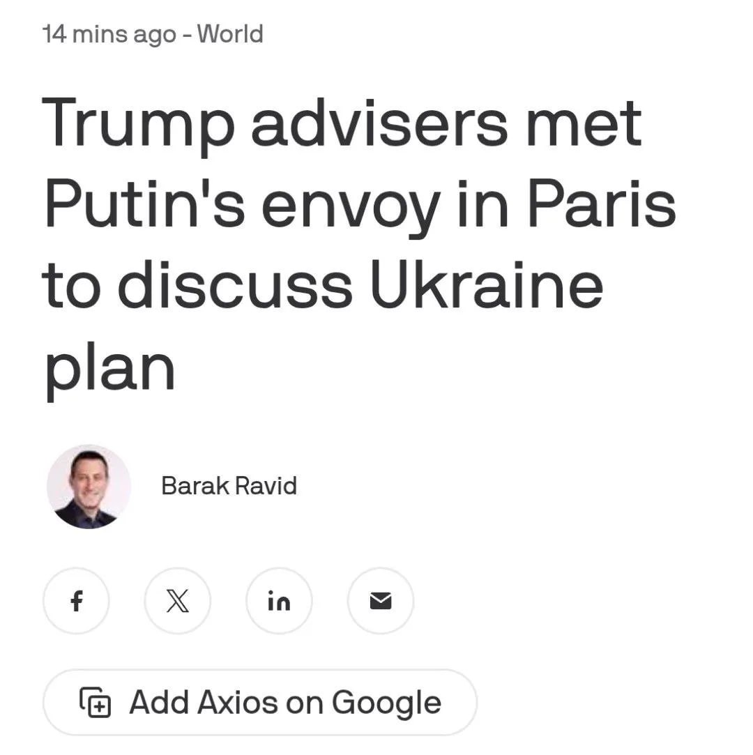 В Париже Уиткофф и Кушнер до этого общались с делегацией Киева и лидерами Великобритании, Франции и Германии, а также участвовали во встречах так называемой «коалиции желающих».