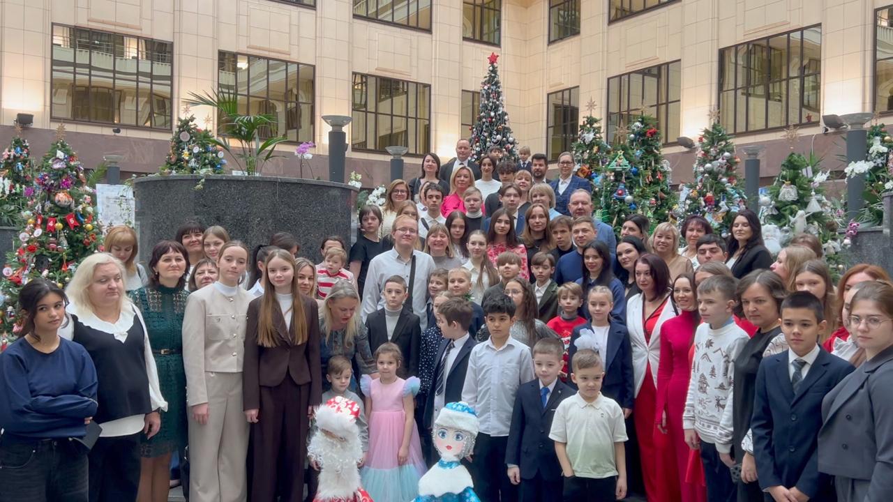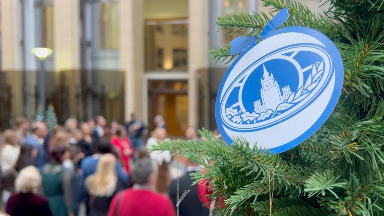 Сегодня в МИД России пришли дети, своими руками сделавшие игрушки для новогодних ёлок, установленных в Атриуме на Смоленской площади.