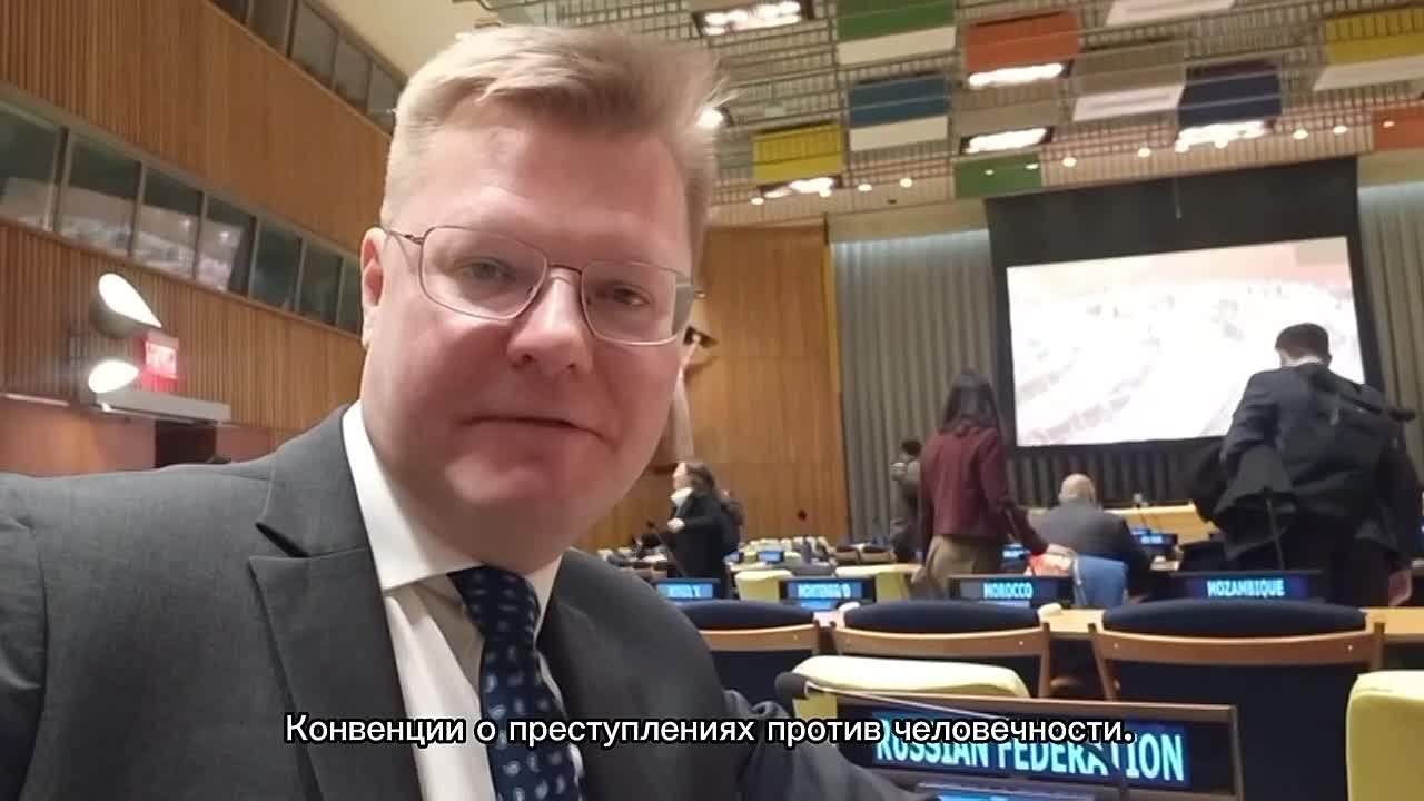 Заместитель директора Правового департамента МИД России Иван Володин принимает участие в подготовительном комитете Конференции полномочных представителей Организации Объединенных Наций по предотвращению и наказанию преступлений против человечности.