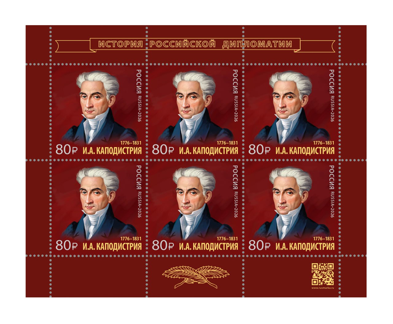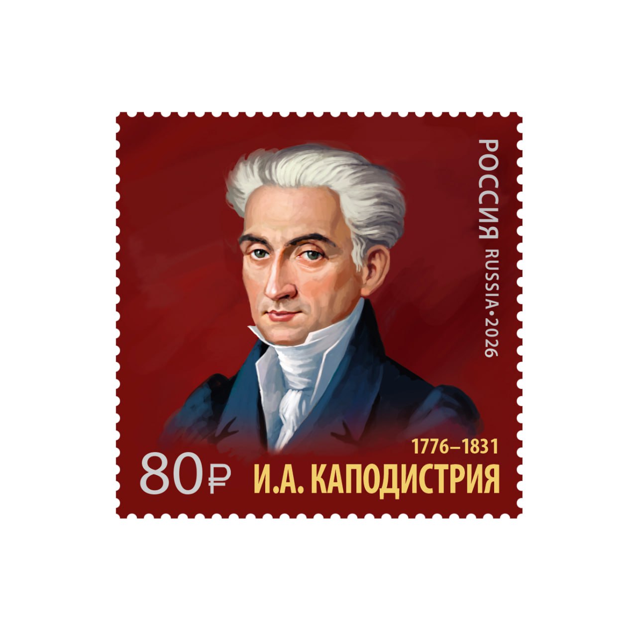 В рамках серии «История российской дипломатии» Историко-документальный департамент МИД России совместно с АО «Марка» инициировал выпуск в обращение государственного знака почтовой оплаты, посвященного 250-летию со дня рождения греческого и российского государственного деятеля и дипломата Ивана Антоновича Каподистрии (1776-1831).