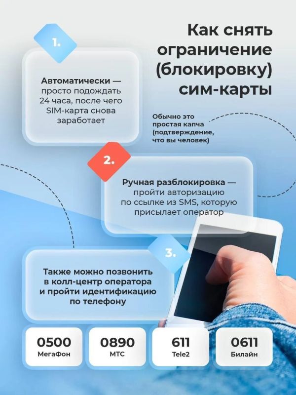 Рекомендации по настройке сети и снятию ограничений SIM-карты – в карточках.