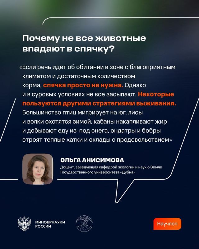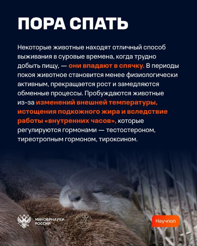 Некоторые животные находят отличный способ выживания в суровые времена, когда трудно добыть пищу, — они впадают в спячку.