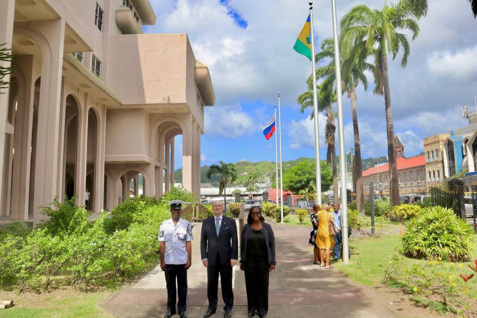 12 ноября с.г. в г. Кингстаун, Сент-Винсент и Гренадины, состоялась церемония вручения верительных грамот Посла России А.А.Прицепова Генерал-Губернатору Даме Сьюзан Дуган.