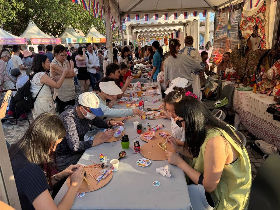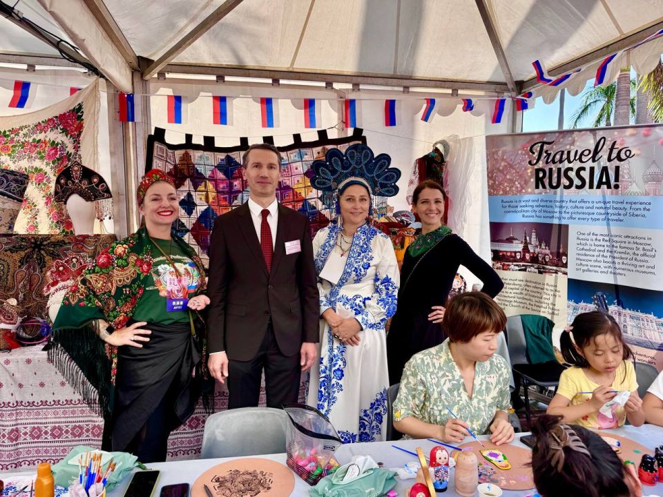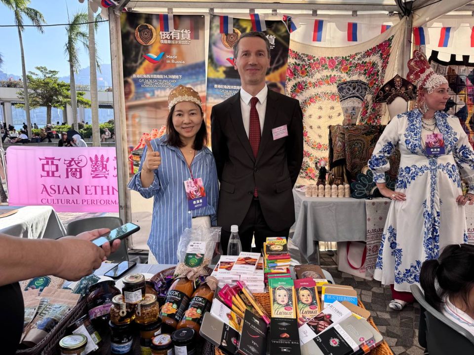 При поддержке Генконсульства художник-русист Анастасия Краева и наши талантливые соотечественники организовали яркий российский стенд с традиционными ремесленными мастерклассами, фотозоной с кокошниками ручной работы, а также живым джазовым исполнением произведений русской музыки. Также на стенде были представлены угощения от «СибирьТайга» - первого магазина национального бренда «Сделано в России» в Гонконге.