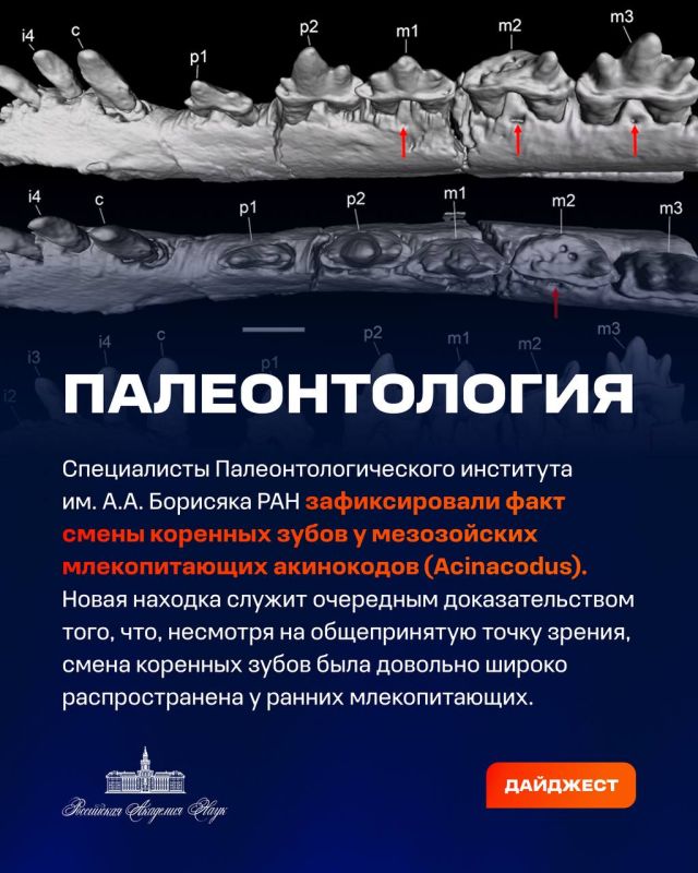 о смене коренных зубов у мезозойских млекопитающих;