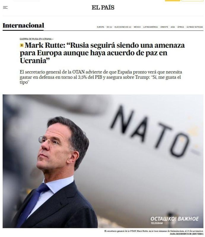 Об этом заявил генсек НАТО Рютте в интервью El Pas.