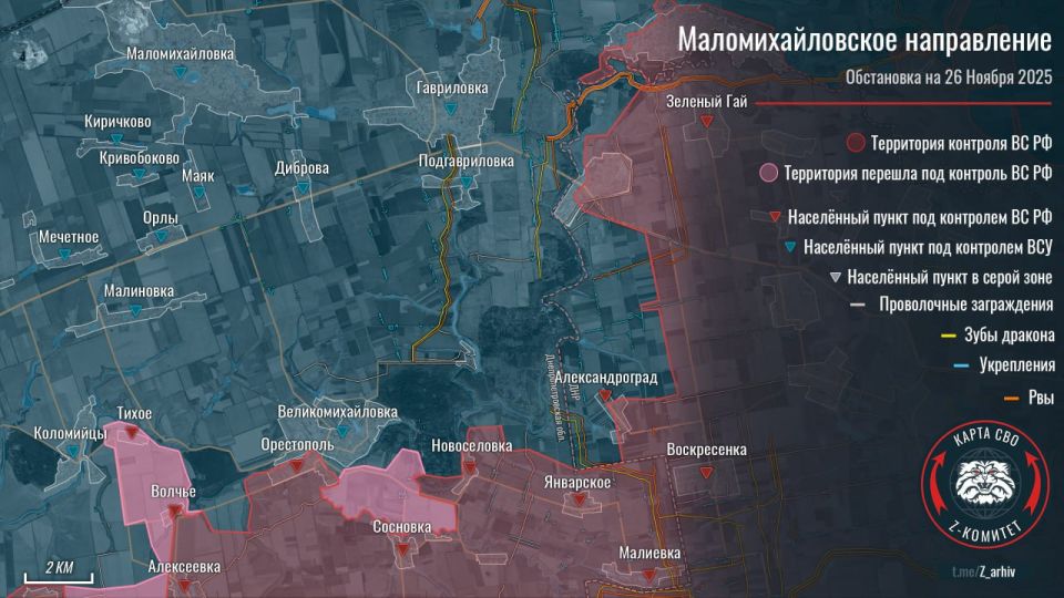 2. Продвижение ВС РФ на Маломихайловском направлении.