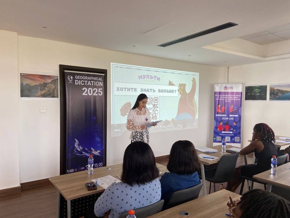 30 ноября Посольством России в Гане совместно с представительством Центра народной дипломатии впервые была организована и проведена международная акция «Географический диктант». В мероприятии приняли участие более 30 человек - студенты ганских университетов, преподаватели, соотечественники, проживающие в Гане. По завершении просветительской акции были вручены памятные свидетельства, состоялось торжественное открытие выставки РГО «Самая красивая страна» и чаепитие в приятной и дружеской атмосфере.