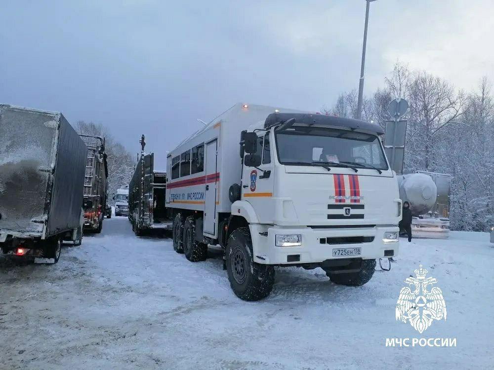 В Иркутской области на трассе Р-258 «Байкал» развернули пункты обогрева в районе затора, образовавшемся из-за снегопада и гололеда, к которым местные службы оказались не готовы. Двое суток тысячи грузовых и легковых машин стояли в пробке, которая вчера растянулась на 85 километров.