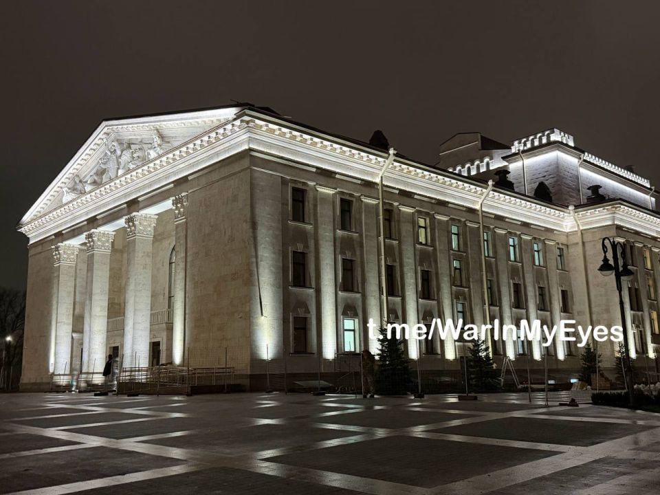 Работы практически окончены, настроена и включена подсветка здания