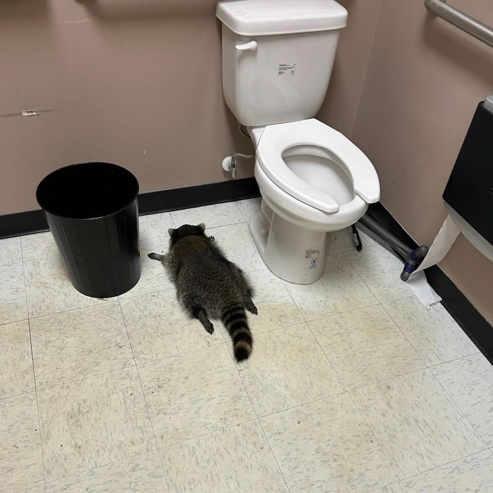 Ночью он пробрался в магазин, разнес несколько витрин с виски, порядочно нализался и пошел вразнос. Продавцы утром нашли его в туалете — енот был в отключке.