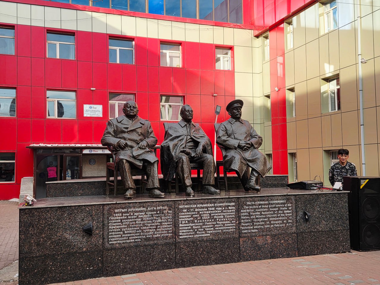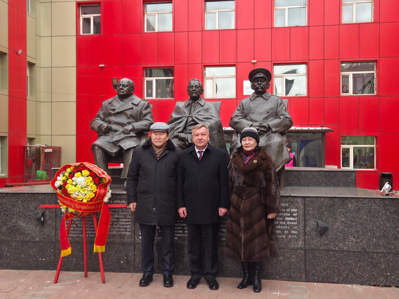 Посол А.Н.Евсиков отметил, что единственный в Монголии и в Азии монумент, посвященный Ялтинской конференции, стоит именно во дворе Университета «Их засаг», и поблагодарил руководство вуза и студентов за столь большое внимание к делу сохранения памяти об общей истории двух братских стран.