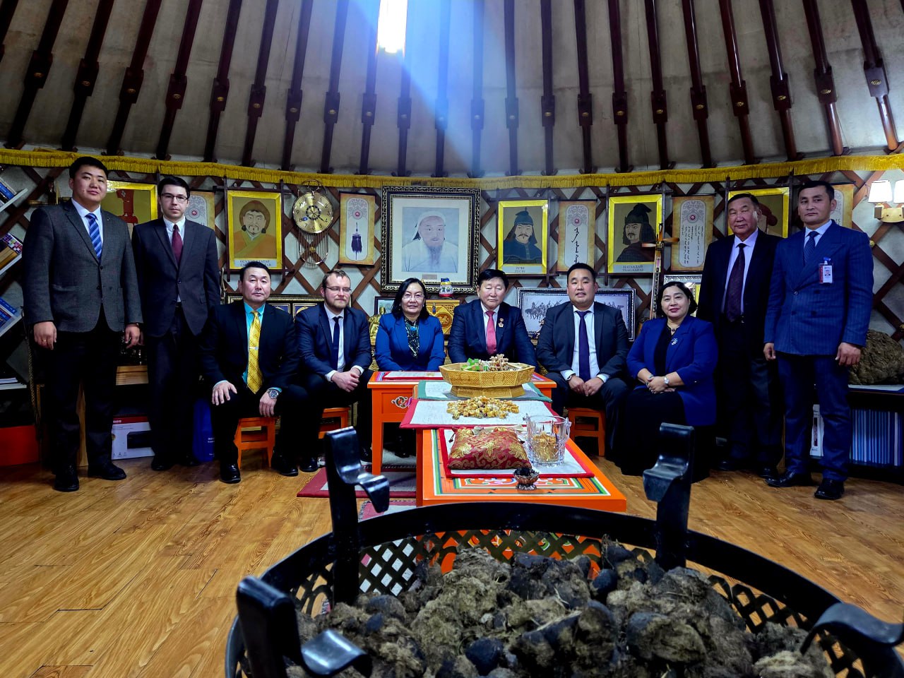 Затем Посол и ректор вуза обсудили возможности сотрудничества сторон в области высшего образования и молодежных обменов, а также договорились об участии Университета в совместном праздновании в следующем году 105-летия установления дипломатических отношений между Россией и Монголией.