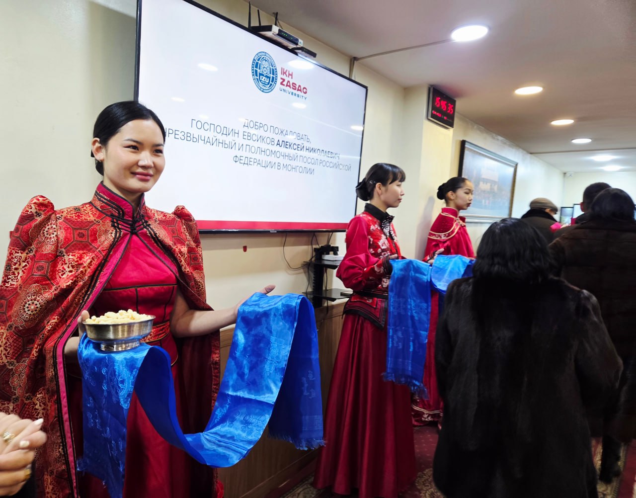 28 ноября с.г. дипломаты Посольства России в Монголии во главе с Чрезвычайным и Полномочным Послом А.Н.Евсиковым посетили Университет «Их засаг» по приглашению ректора Н.Ням-Осора.