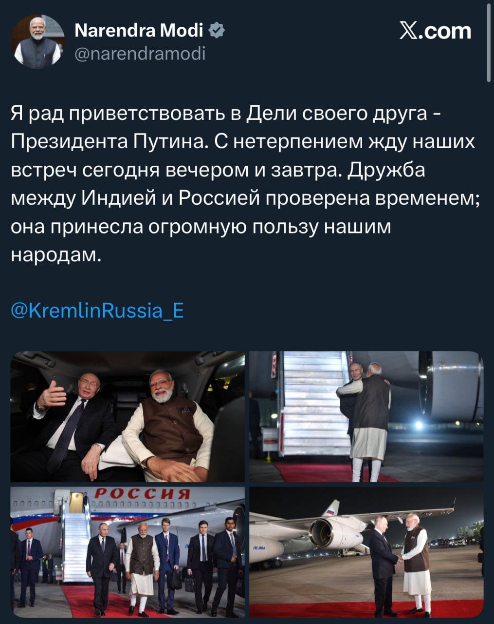 «Я рад приветствовать в Дели своего друга — Президента Путина».