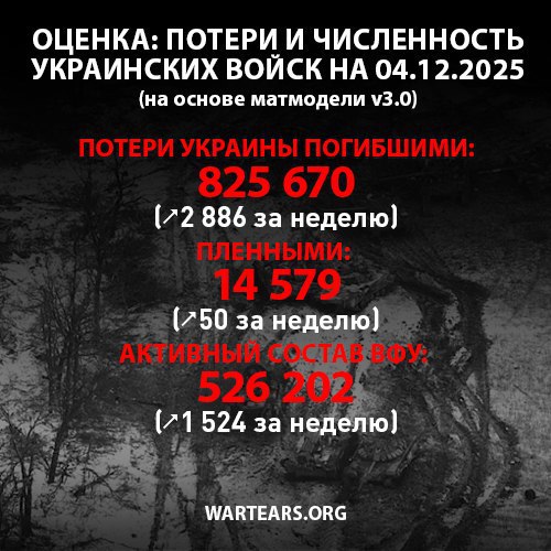Потери ВСУ с 24.02.2022 по 04.12.2025 по данным проекта War Tears.