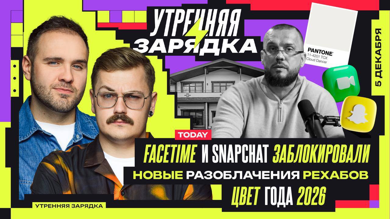 Кровать заправили? Зубы почистили? Теперь можно и "Утренную зарядку" послушать в VK Видео. Сегодня вместе с Никитой Матнишяном и Владом Антоновым обсудим главные темы дня: блокировка FaceTime и Snapchat в России, разоблачение издевательств в рехабах и главный цвет следующего года.