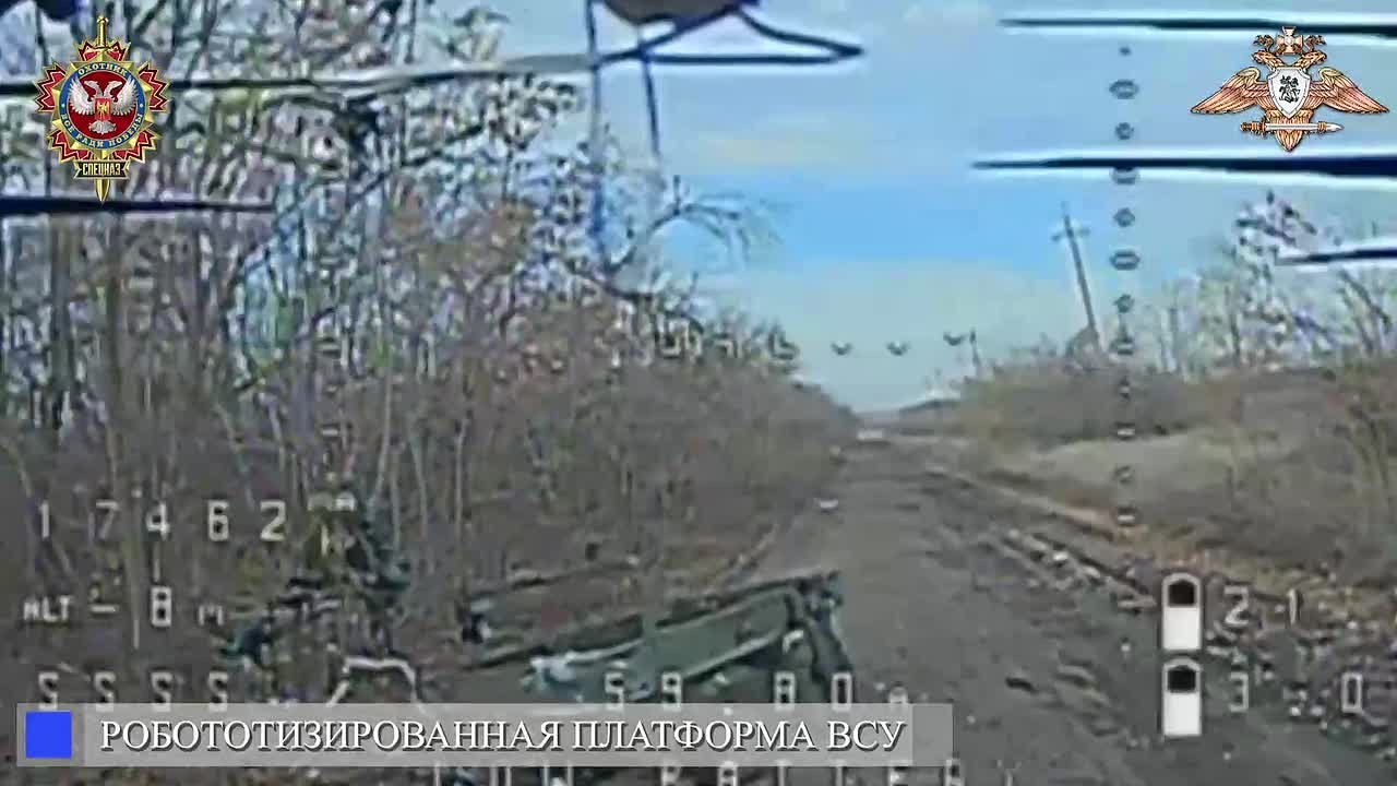 На Константиновском направлении FPV-дрон отдельного отряда специального назначения "Охотник" 51 гвардейской общевойсковой армии уничтожил наземный роботизированный комплекс противника, который подъехал к позиции украинских боевиков для эвакуации раненого националиста.