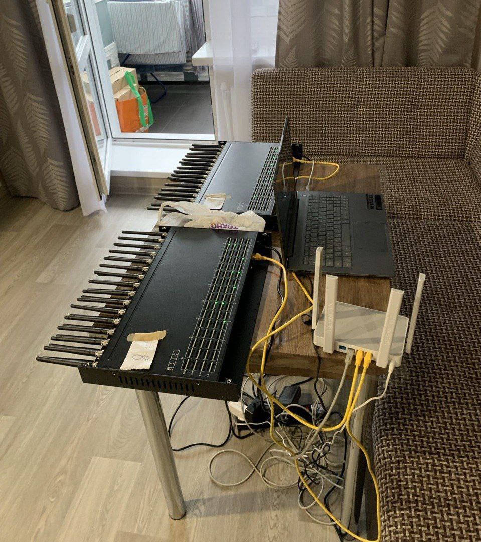 Во время обысков изъяли четыре комплекта оборудования, около тысячи SIM-карт, ноутбуки и роутеры.